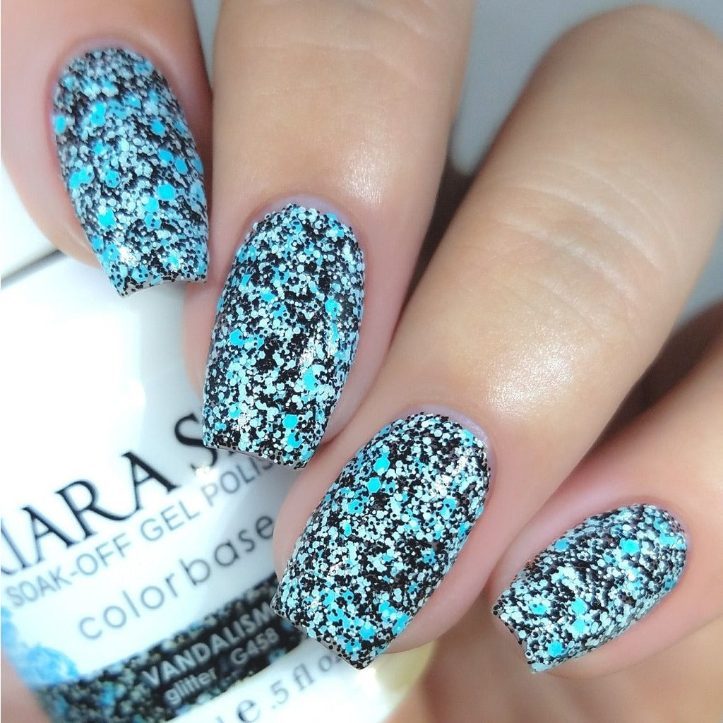 When is vandalism art? When it’s on your nails! Simple and sheer, this glitter black nail polish is absolutely loaded with flecks of black, white and sky blue matte glitter that you’ll love to get your hands on. For more dazzling options, Vandalism is also available as a sparkly black nail powder.