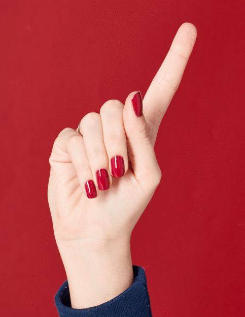 - 2. For a perfect polish, apply one stroke of nail lacquer down the center of the nail, followed by one stroke along each side of the nail.