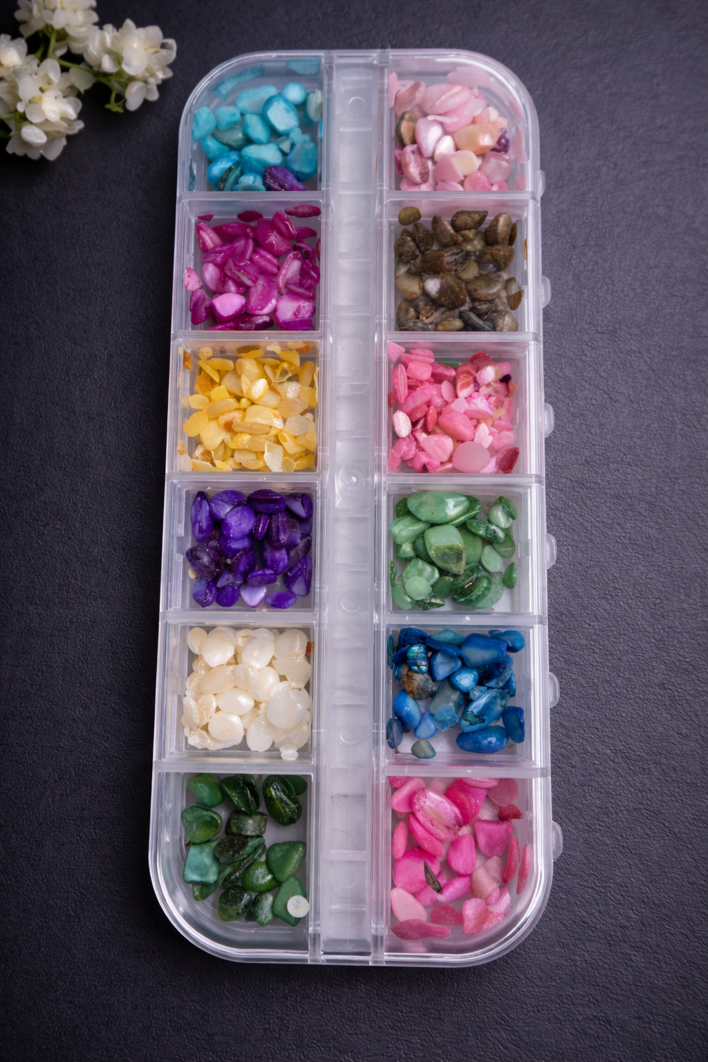 Crushed stones are a popular nail art element because they add rich texture, sparkle, and depth to nail designs. Unlike traditional rhinestones, crushed stones create an organic, multi-faceted look that reflects light from every angle, giving nails a raw yet luxurious finish. Nail artists use them to create statement accent nails, encapsulated designs, crystal effects, or abstract textures that feel modern and artistic. When sealed properly with gel or acrylic, crushed stones offer long-lasting wear while elevating nails from simple manicures to bold, eye-catching works of art ✨💎