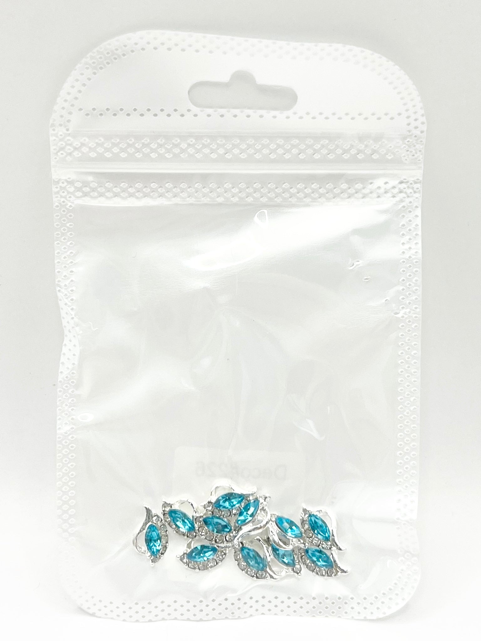 Queen - Nail Charms 10pc - #226 Silver Blue Leafs with Crystals