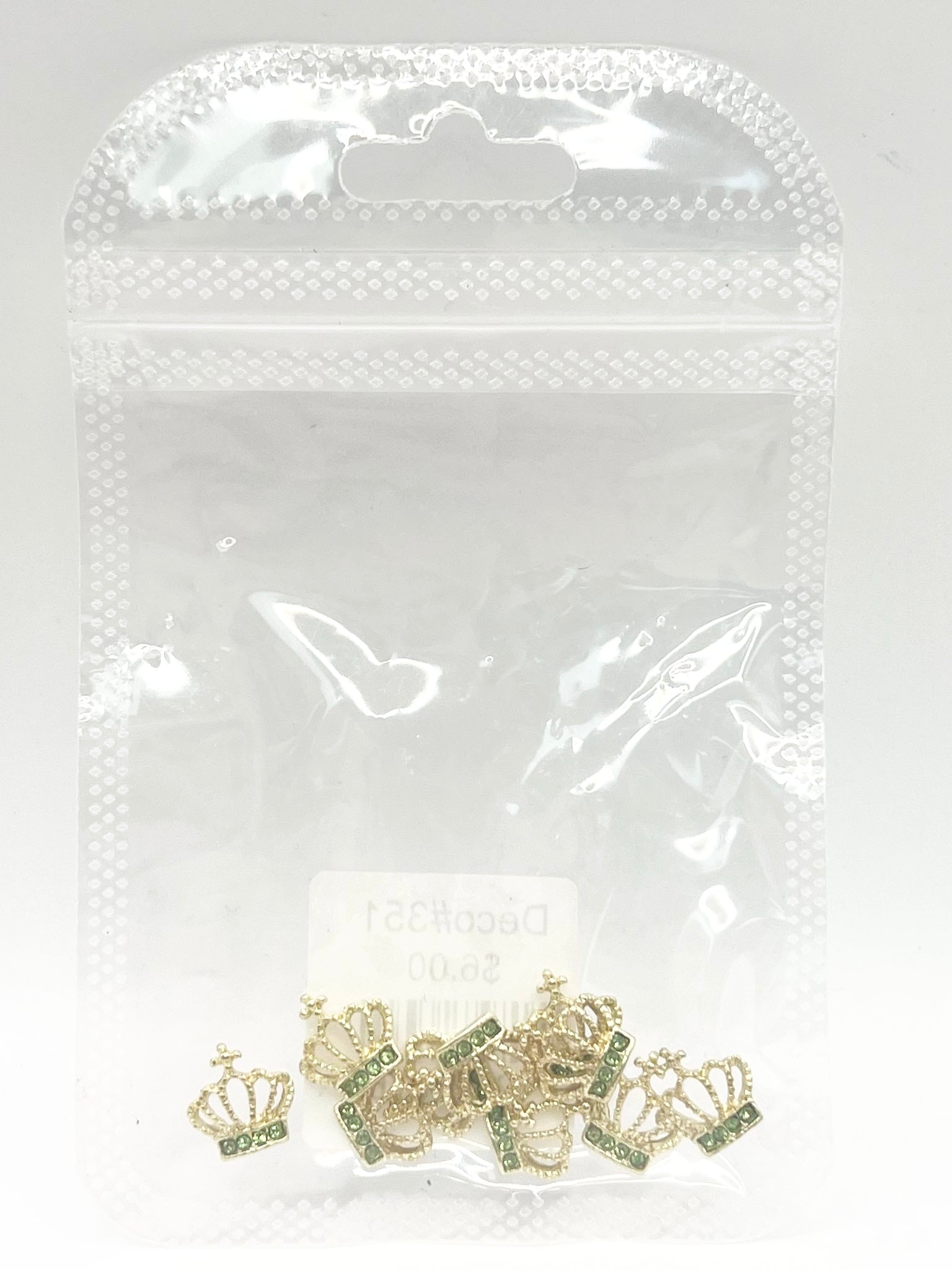 Queen - Nail Charms 10pc - #351 Gold Light Green Crystal Crowns