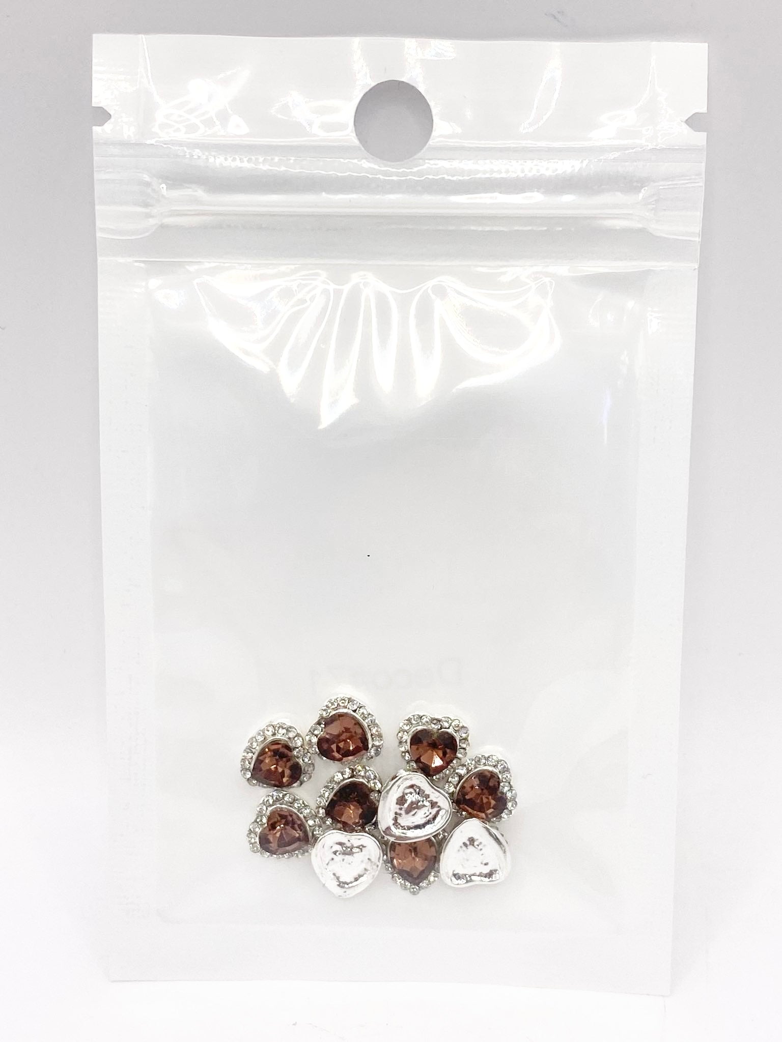 Queen - Nail Charms 10pc - #071 Silver Brown Hearts