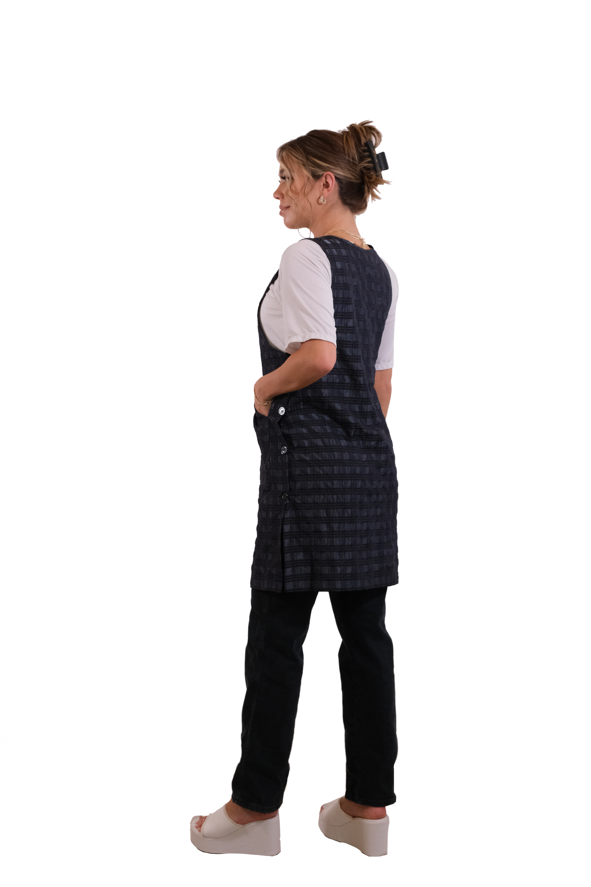 Therapispa - Apron Round Neck W/Button - Checker